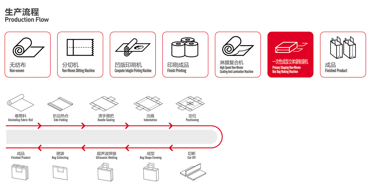 該機適用于原材料為無紡布,覆膜無紡布,專業(yè)生產(chǎn)一次成型覆膜的立體袋(免翻),設(shè)備生產(chǎn)穩(wěn)定,袋子熱合部位牢固,美觀、大方,可反復(fù)利用,主要用于生產(chǎn)無紡布煙、酒包裝袋,無紡布飲料包裝袋,禮品袋,酒店廣告袋等無紡布袋,該機集機電為一體,運用LCD觸摸屏操作。配以步進步式定長,光電跟蹤,電腦自動定位,電腦自動糾邊,準確,平穩(wěn),自動計數(shù),即可設(shè)定計數(shù)報警,自動燙把手,自動疊袋等工控裝置。